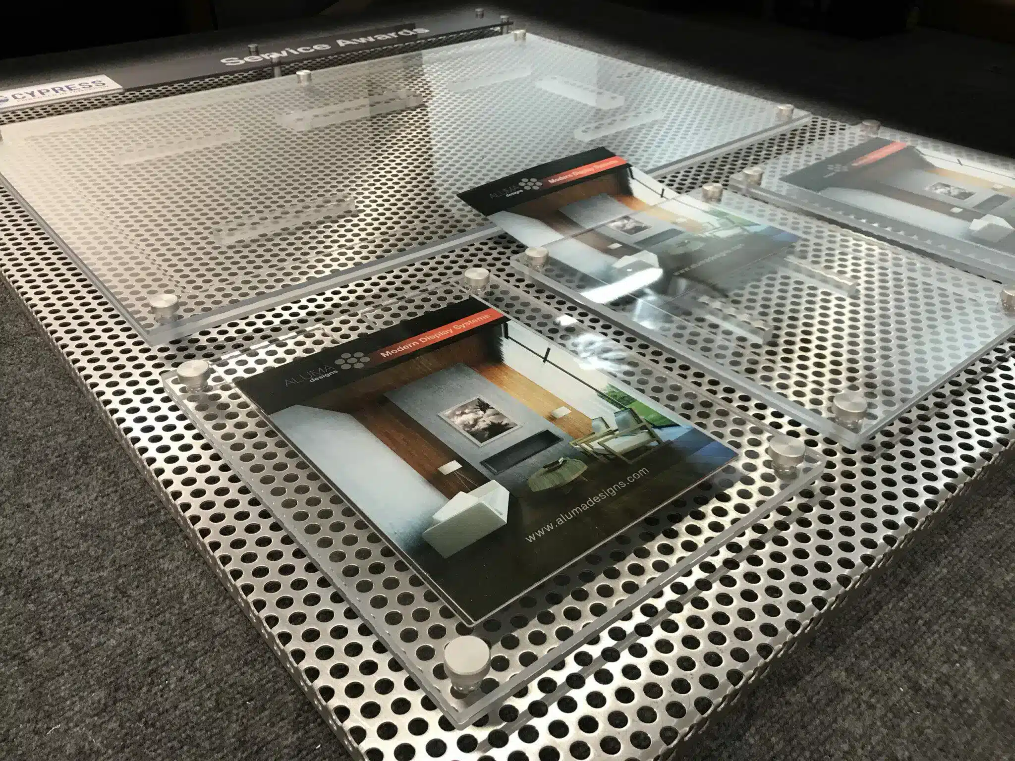 Cypress Semiconductor needed a solution to display service awards and company news in line with the company’s modern high-tech brand. The ALUMA architek Recognition Display System was a perfect fit. Not only did it allow them to display multiple awards and documents, it also allowed them to make effortless changes as needed.