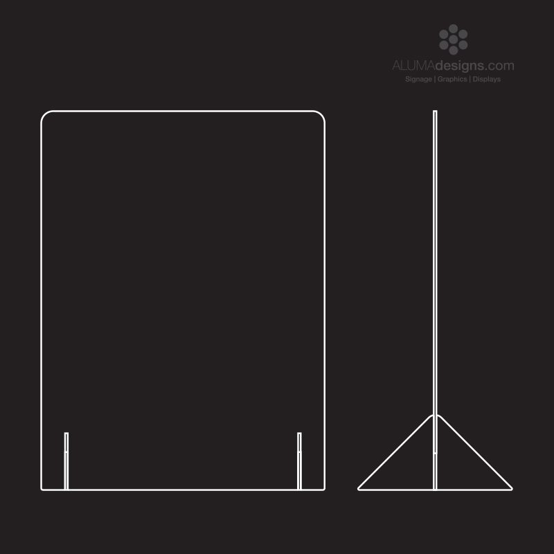 Counter Top Free Standing Acrylic Sneeze Guard (NO Window) Standard Sizes: 24″ W x 24″ H, 24″ W x 32″ H, 32″ W x 24 H. – Custom Size Sneeze Guards Available. 1/4″ Acrylic. Add Custom Printing – Upload logo/text files at checkout. *Attention: Acrylic edges can be sharp. Hand-Sanded Edge Upgrade Available